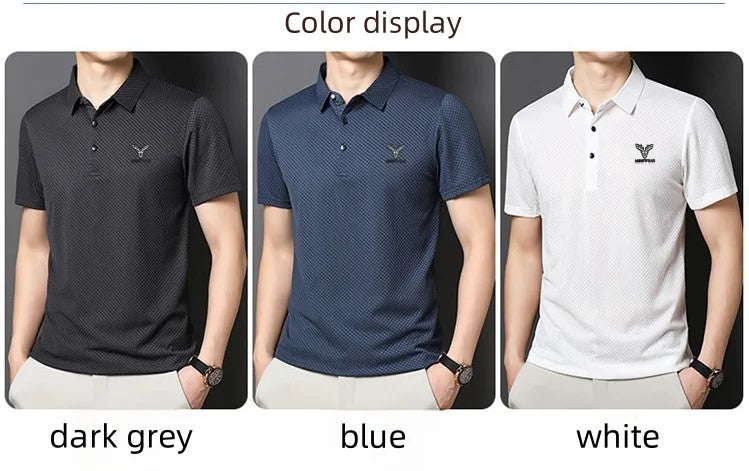 Mens Flexiable Silk Ice Mesh Polo White T-shirt.
