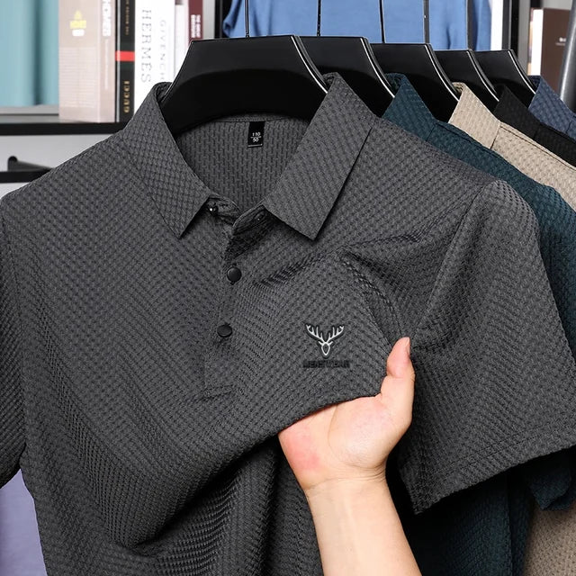 This is a men's short-sleeved polo shirt, also described as a designer boutique jacquard polo or a fashionable casual polo shirt.